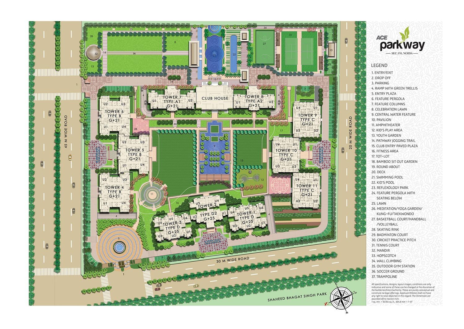 ACE Parkway is an exclusive 3-sided open-corner plot that offers apartments in Noida Expressway. Located in sector 150 Noida, it is one of the most sought-after addresses with robust social infrastructure. The incredible architectural work was done by Hafeez Contractor. The planning of the Art Deco-inspired elevations and landscapes has been done by Sanju Bose, while the interiors are designed by Gauri Khan.